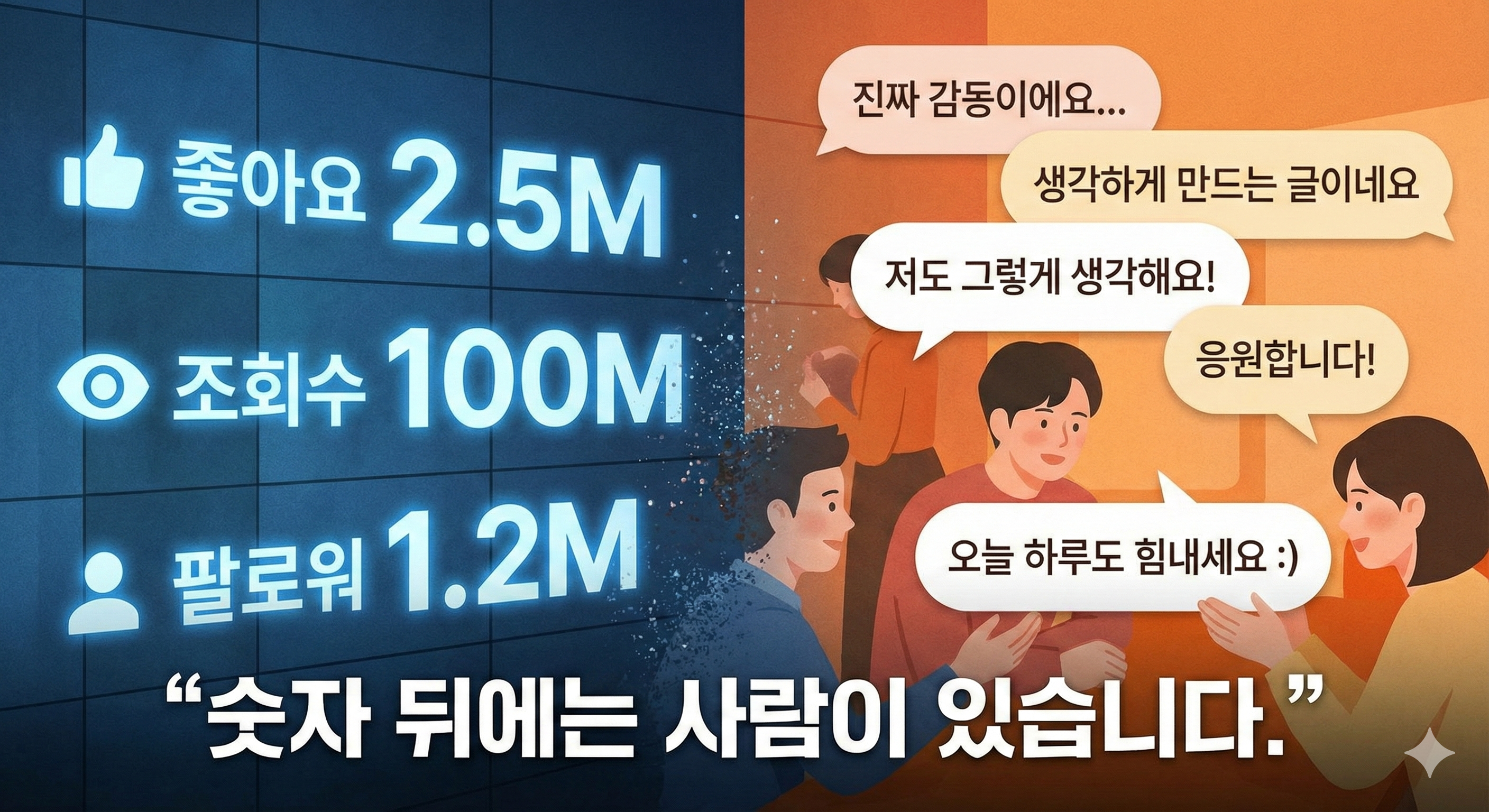 좋아요, 조회수, 도달 수 같은 지표를 올리는 데에만 집중하다 보면, 정작 중요한 고객과의 정성적 교감은 쉽게 뒤로 밀려납니다.