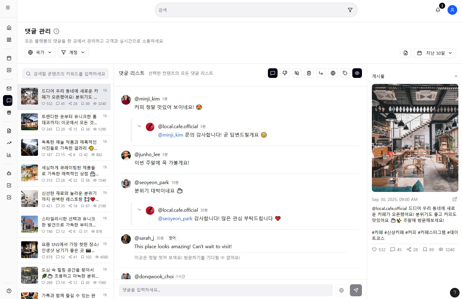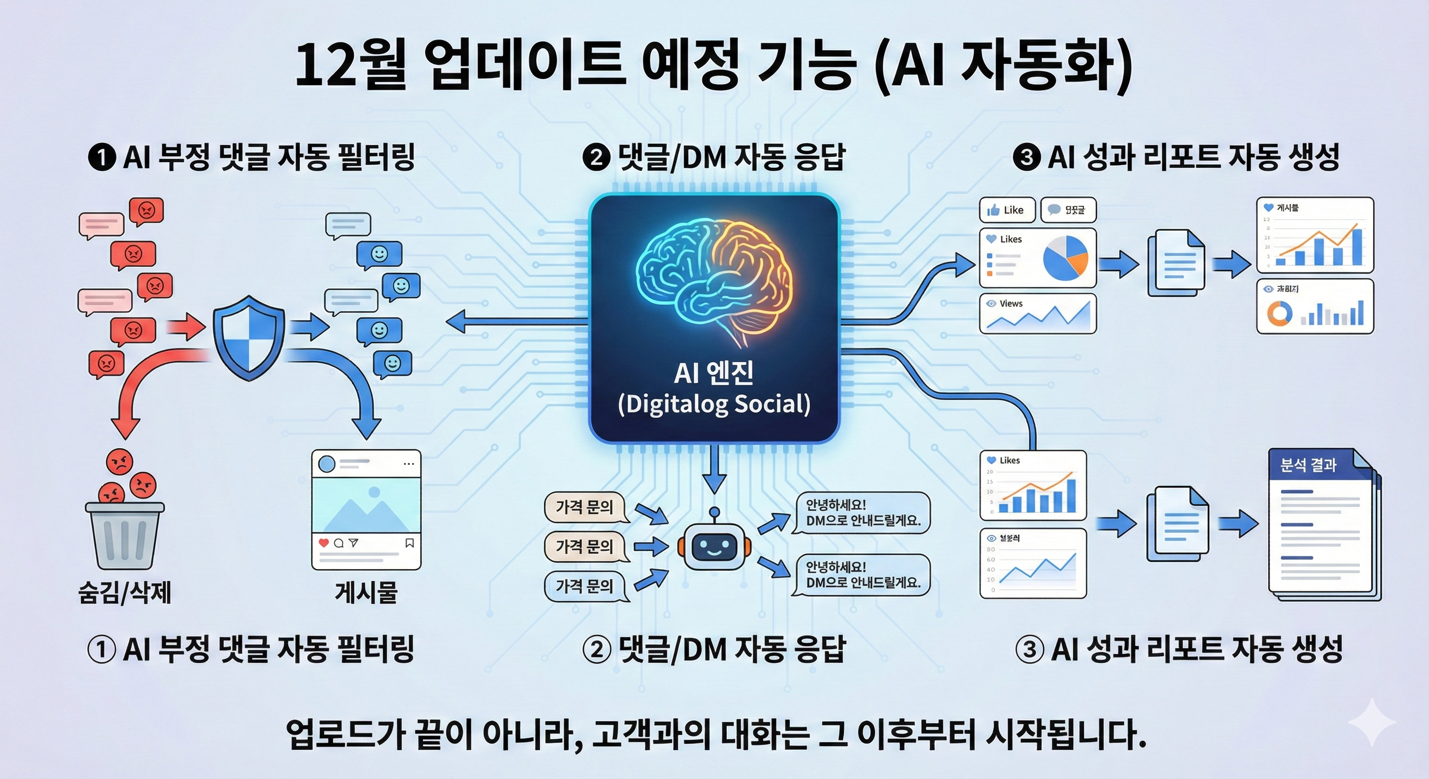 Digitalog Social은 콘텐츠를 만드는 단계보다 그 이후의 고객 대화와 운영을 어떻게 더 효율적으로 만들지에 집중한 솔루션입니다.